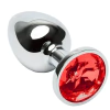Plug em alumínio tamanho médio com pedra em formato redondo em cores diversas é um plug anal de luxo em metal, com formato cônico, feito em alumínio fundido e polido a mão, possui em sua base uma pedra lapidada que lembra um diamante colorido, pode ser usada para agregar com temperaturas diferentes, coloque-o no freezer para esfriar, ou em uma bacia de água quente para aquecer.